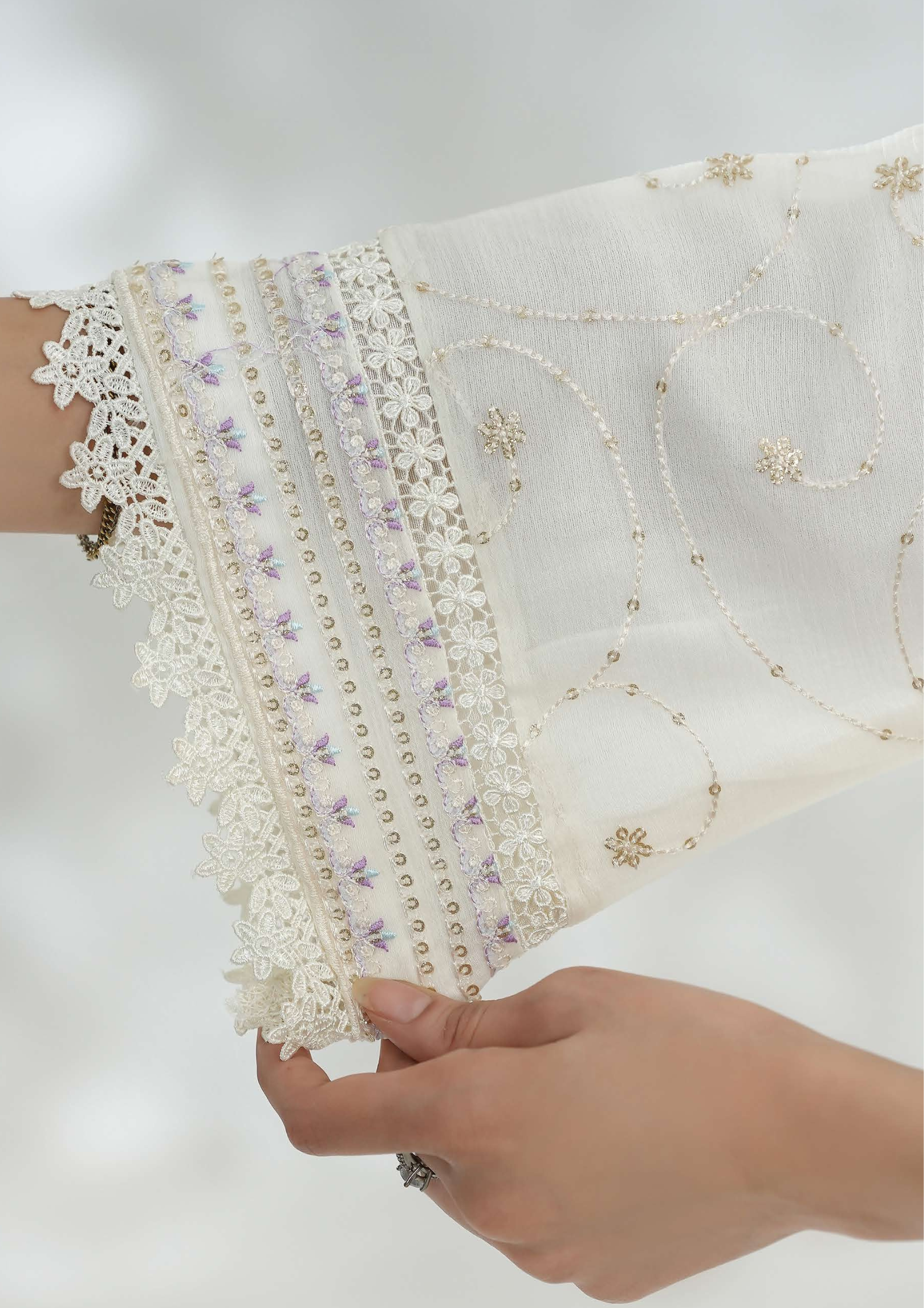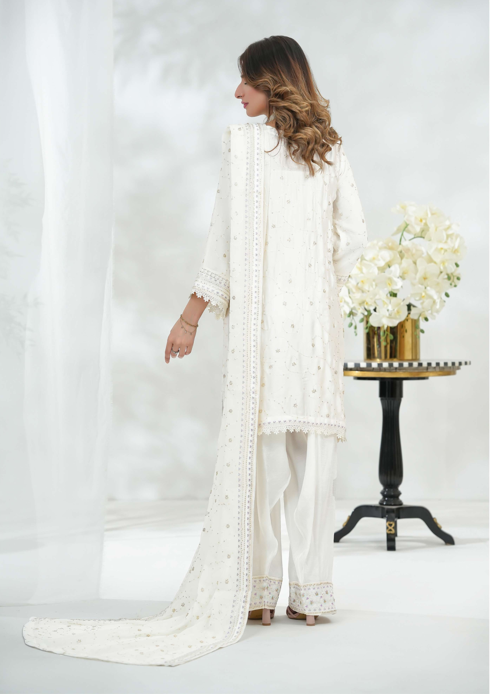 Shanse Silk Embroidered 3PCS Ready-to-Wear Farshi Shalwar | White