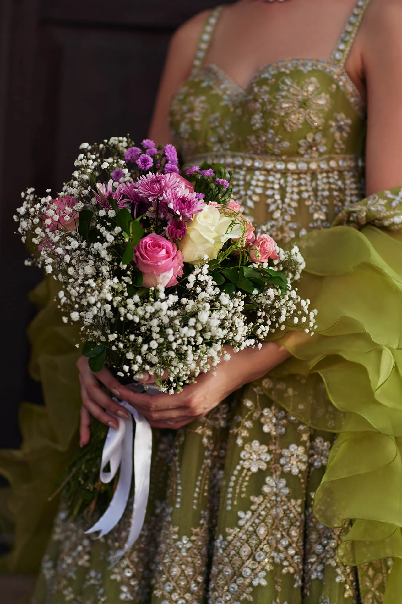 Nooré Sitara can be tailored as a lehenga choli or a flowing pishwas, making it a stunning choice for sangeet or wedding festivities.